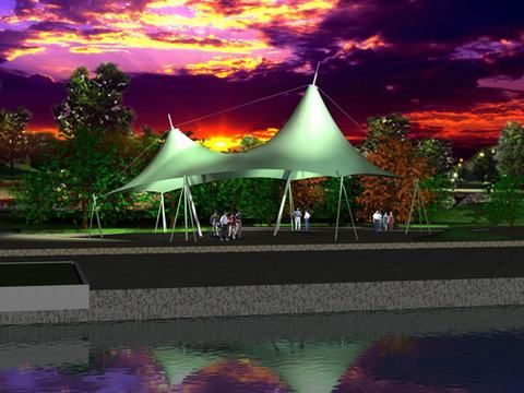 覆蓋大跨度空間:膜結(jié)構(gòu)中所使用的膜材料每平方壹公斤左右,由于自重輕,加上鋼索、鋼結(jié)構(gòu)高強(qiáng)度材料的采用,與受力體系簡潔合理,大部分以軸力傳遞,故使膜結(jié)構(gòu)適合跨越大空間而形成開闊的無柱大跨度結(jié)構(gòu)體系。